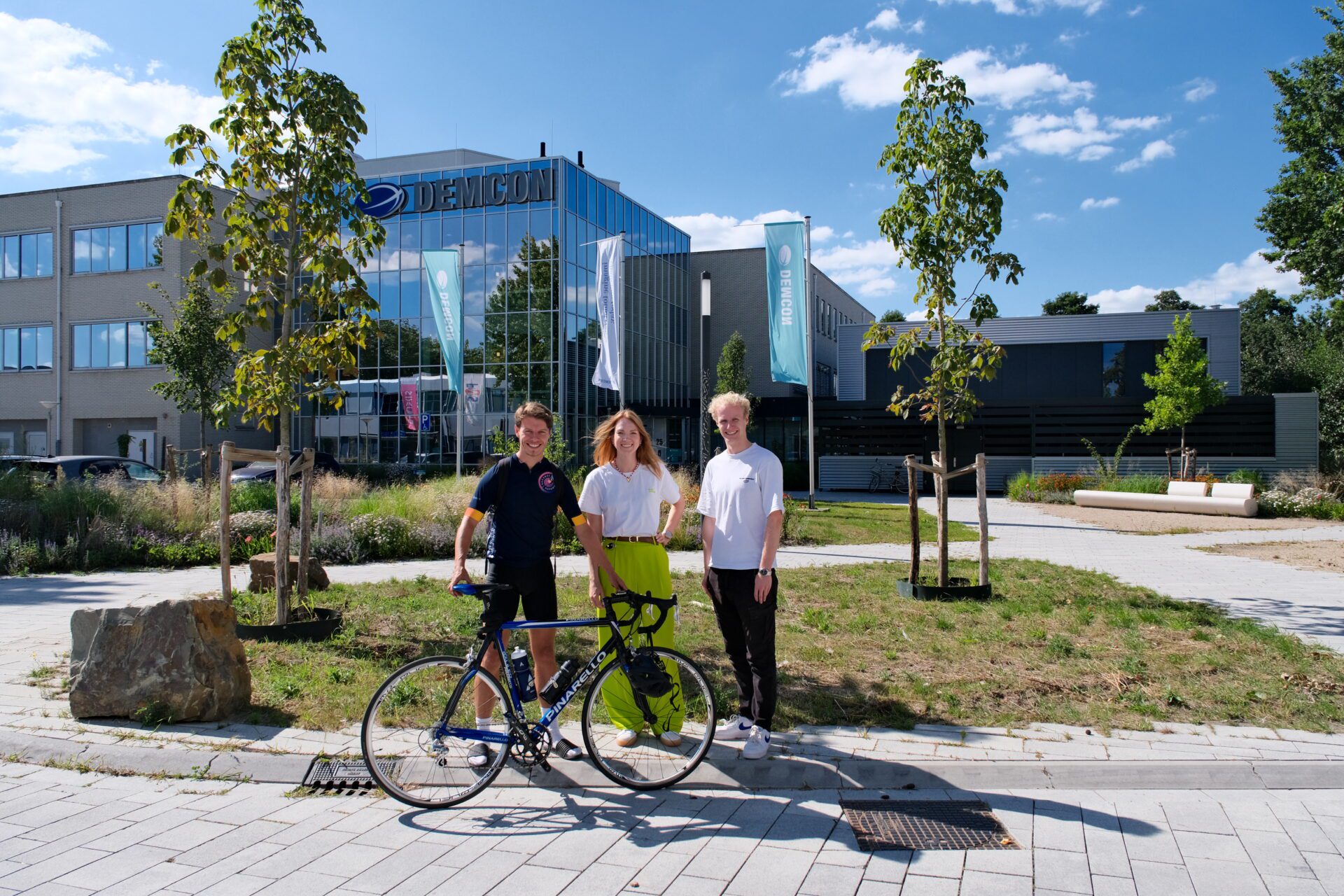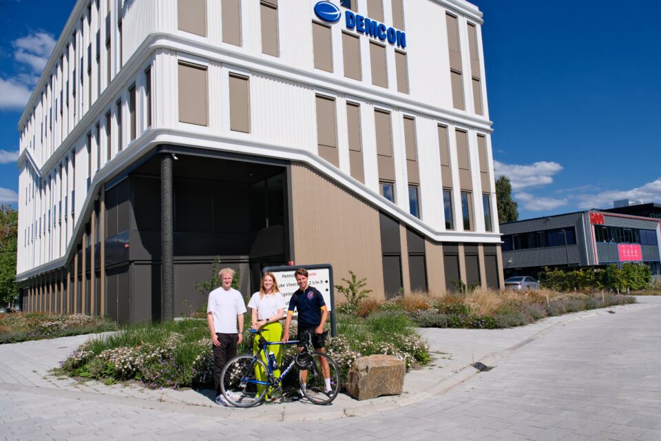 Deze zomer fietst Douwe de Vries, racende reporter van Overijssel Onderweg, vanuit het provinciehuis in Zwolle door de provincie om inspirerende werkgevers te ontmoeten die werk maken van duurzaam mobiliteitsbeleid. Dit keer is het een serieuze fietstocht van de Hanzestad naar het kennispark in Enschede, waar twee enthousiaste medewerkers van hightechbedrijf Demcon hem opwachten.