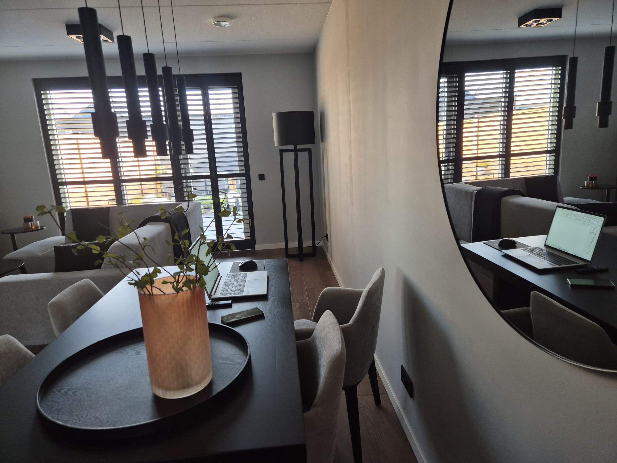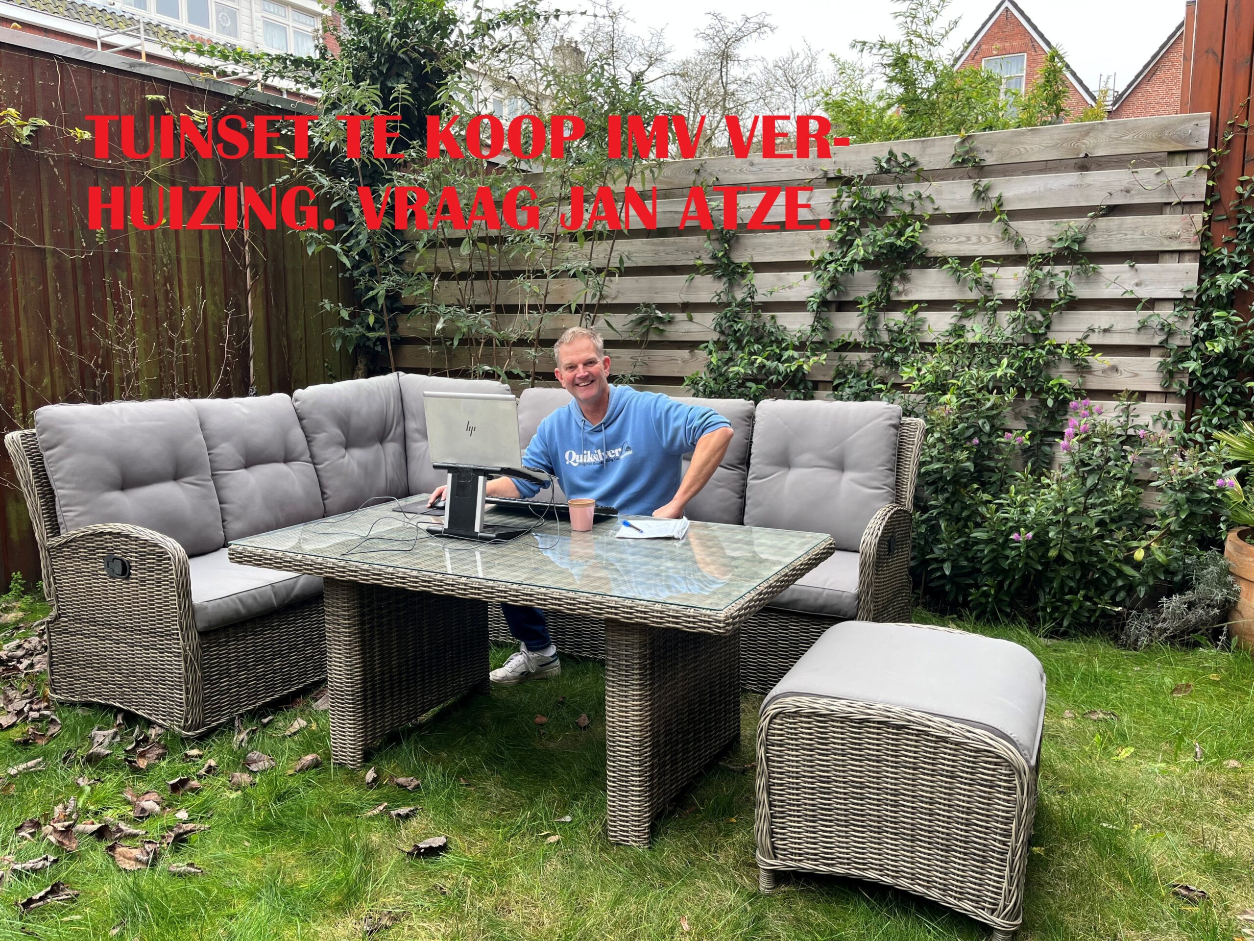 Dit is de thuiswerkplek van Jan van NMCO (je kan prima buitenwerken, het weer is heerlijk zacht)