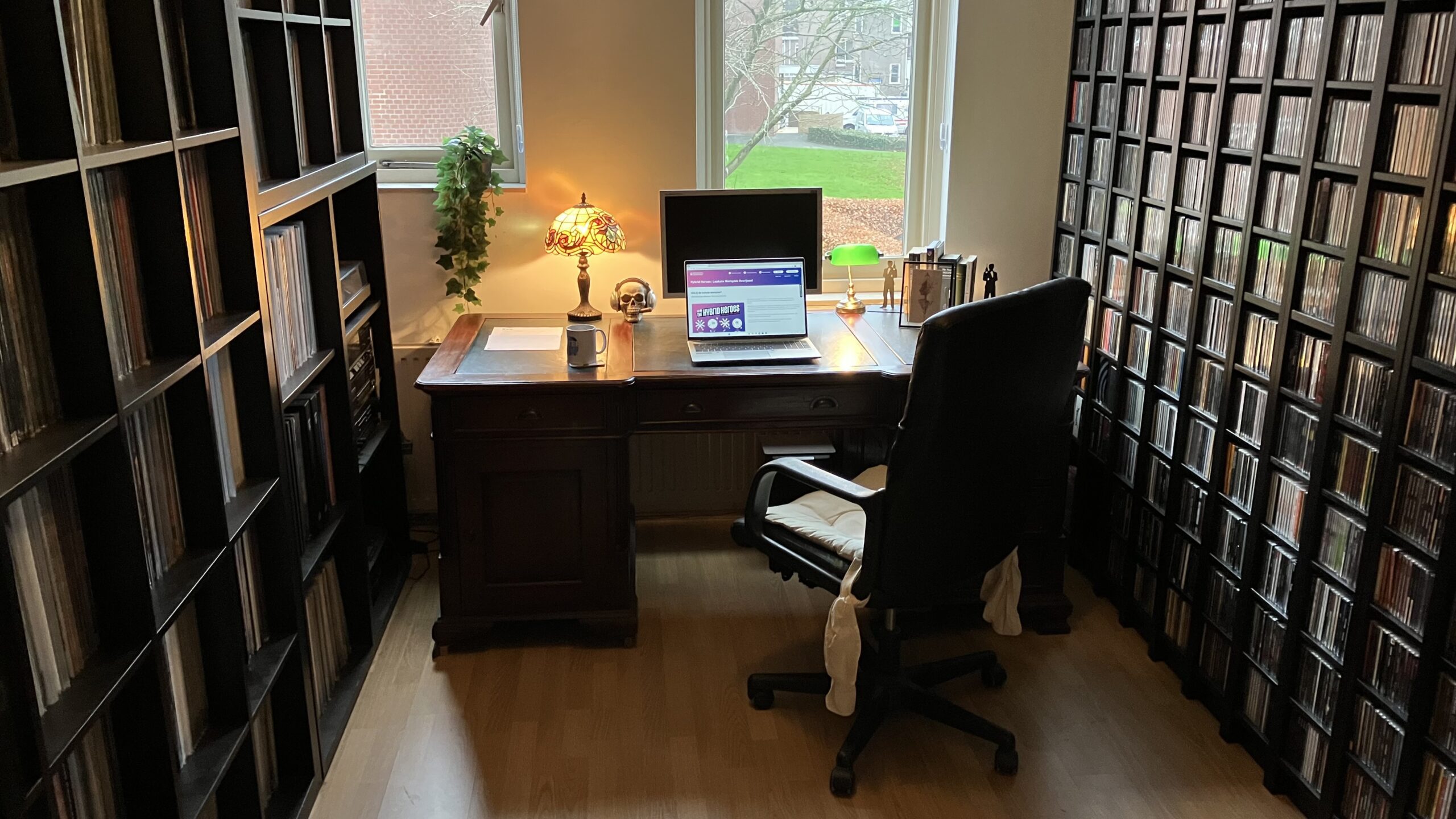 Dit is de thuiswerkplek van Mark, Griffie. (Geen overleg? Dan een lekker muziekje.)