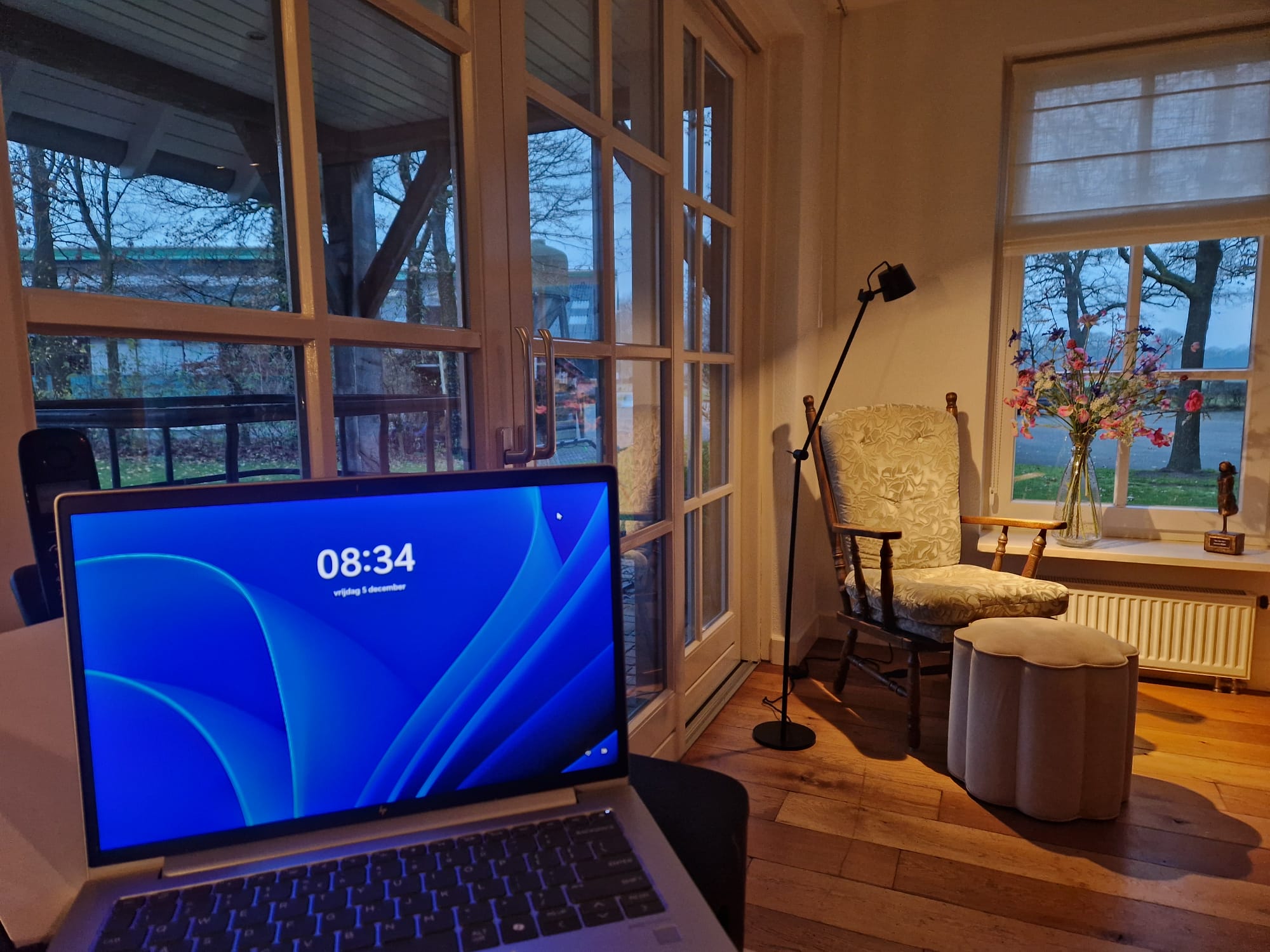 Dit is de thuiswerkplek van Henk van ECEE (lekker vroeg beginnen als je thuiswerkt)