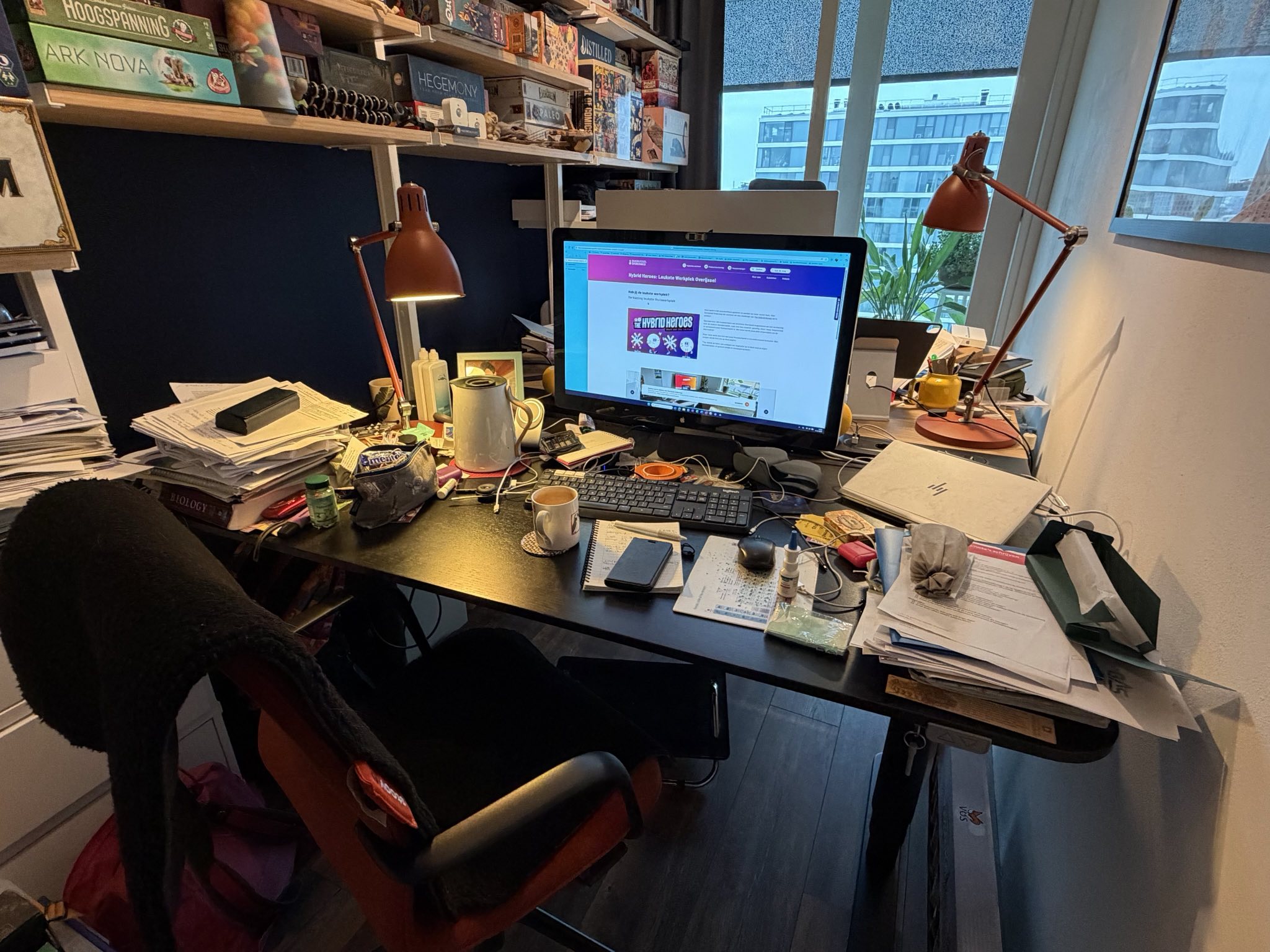 Dit is de thuiswerkplek van Mathijn van NMNB (Donderdag verhuisd, dus nog even in de rommel!)